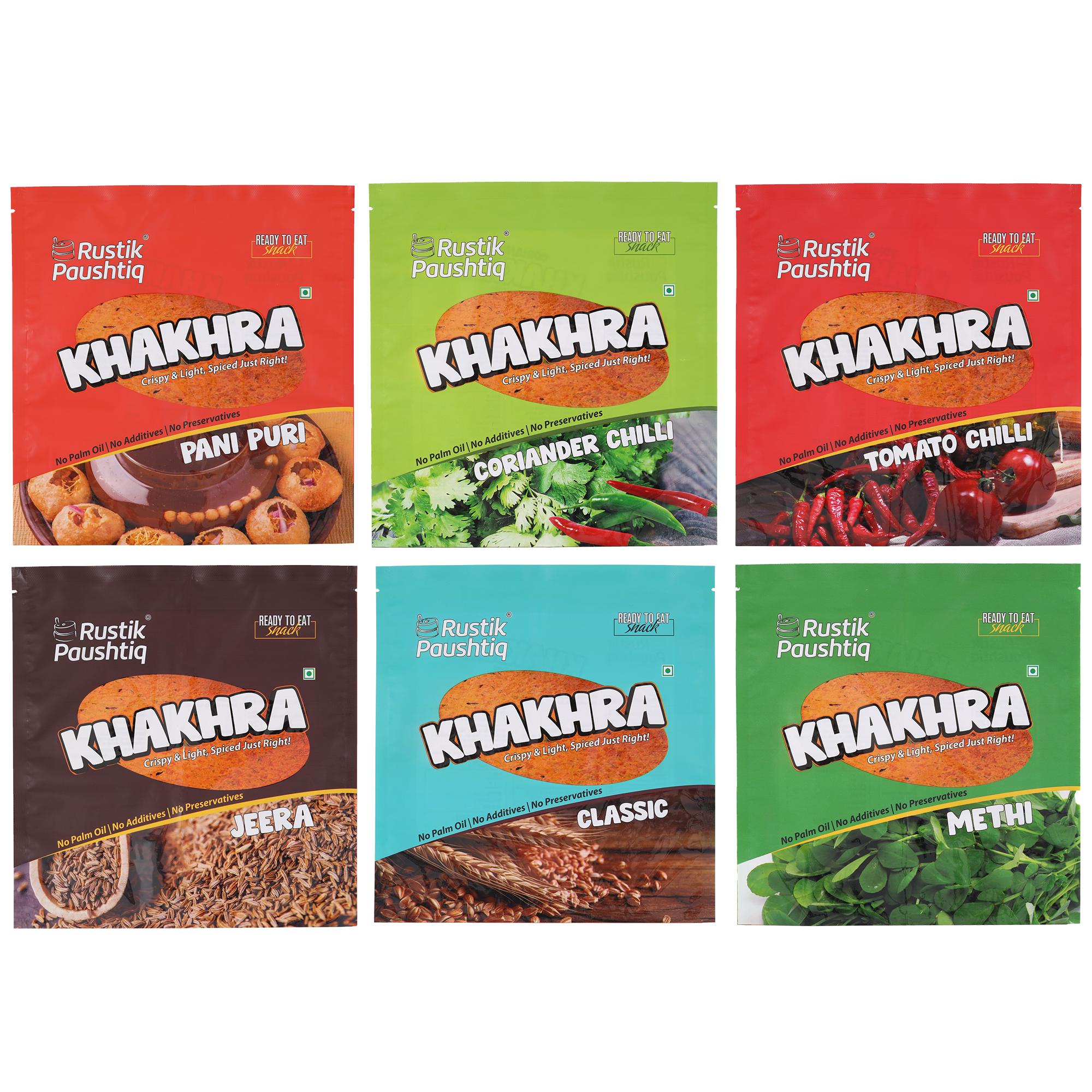 Khakhra flavours : Classic | Jeera | Methi | Panipuri | Coriander Chilli | Tomato Chilli