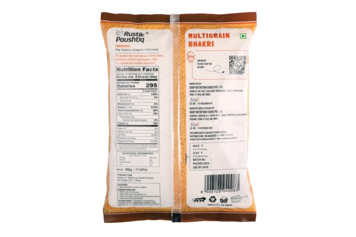 A traditional Indian mixed flour, optimized for good health. Not just it is filling & satiating but is also tasty. Pair up your Bhakri with cooked pulses/veggies which will ensure good fibre intake. Bhakri makes a quick and nutritious hot meal/snack option.